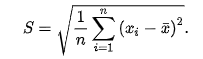 Если n - это количество элементов, x(i) - массив элементов, а x(штрих) - среднее значение, то стандартное отклонение считается так: